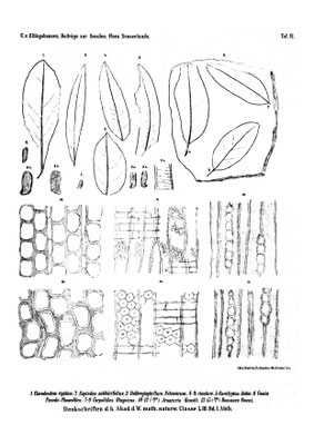 Bezüglich des Vorkommens der übrigen rezenten Cycadeengattungen im Mesozoikum war man viel mehr im Zweifel. Es war eine Anzahl künstlicher Gattungen für Blattreste aufgesteht worden, die zwar teilweise von denen rezenter Zamioideen abgeleitete Namen erhalten hatten, so z. B. Zamites und Dioonites, die aber der systematischen Stellung nach ganz unklar waren. Von Fruchtzapfen, die zu den Zamioideen gehören könnten, wird in erster Linie Beama Carruthers genannt, die mit ihren zweisamigen Makrosporophyllen sich den Zapfen der rezenten Zamieen anschliesst. (...)