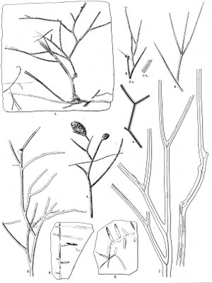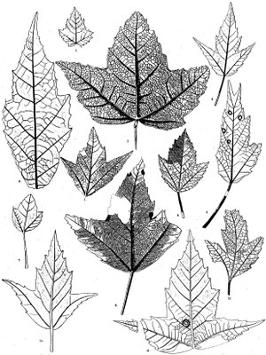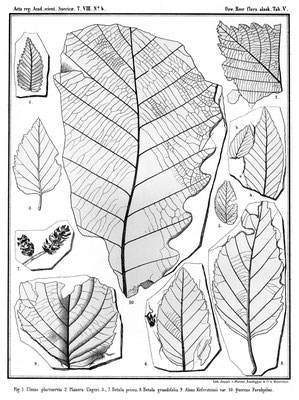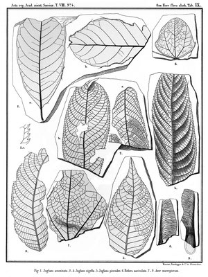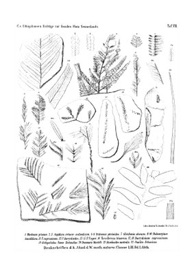 Die miocene Flora von Alaska, welche uns durch die Sammlung des Herrn Bergmeister Hjalm. Furuhjelm bekannt worden war, machte es in hohem Grade wünschbar zu erfahren wie die Flora auf der asiatischen Seite des Bering- und Ochotskischen Meeres zur Miocenzeit ausgesehen habe. Es wandte sich daher Herr Prof. Nordenskiöld vor mehreren Jahren an den Herrn Admiral Furuhjelm, damals Gouverneur des Ainurlandes, um durch seine Vermittelung eine Sammlung von fossilen Pflanzen von der Insel Sachalin zu erhalten. Es waren dort beim Posten Dui und bei Mgratsch schon im Jahre 1860 fossile Pflanzen von dem’ Herrn Akademiker Fr. Schmidt und Herrn Paul Glehn entdeckt und gesammelt worden. Prof. Nordenskiöld erhielt von Herrn Furuhjelm eine ziemlich ansehnliche Sammlung, bei welcher aber der Fundort nicht näher angegeben war. Das Gestein, in welchem die Pflanzen liegen, stimmt mit dem von Mgratsch überein, es findet sich aber auch bei Dui und die Pflanzen kommen sehr wahrscheinlich von dieser Stelle. Diese liegt einige Minuten südlich, Mgratsch einige Minuten nördlich vom 51° n. Br. an der Westseite der Insel. Beide Stellen sind also nahe beisammen. Die mir zur Untersuchung zügekommenen Pflanzen liegen in einem eisenhaltigen, öfter sandigen Thon von brauner Farbe, der demjenigen von Ober-Atanekerdluk ähnlich sieht. Sie lassen 19 Arten erkennen, von denen 18 Arten aus anderen miocenen Lokalitäten bekannt sind, daher diese Ablagerung zur miocenen Zeit sich gebildet haben muss. 15 dieser Arten sehen wir unter den miocenen Pflanzen von Alaska, nämlich: (...)