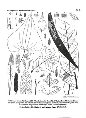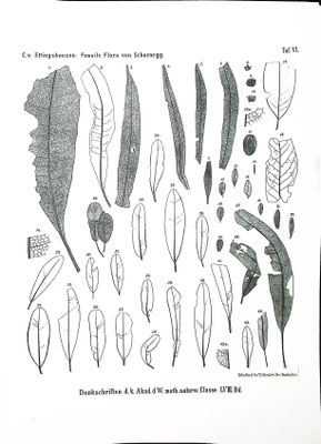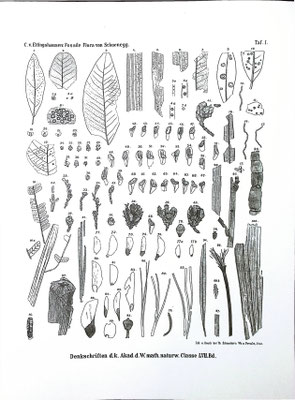 Die sehr reichhaltige Lagerstätte fossiler Pflanzen bei Schönegg unweit von Wies in Steiermark ist eine lange Reihe von Jahren hindurch Gegenstand meiner besonderen Aufmerksamkeit gewesen. Das Vorkommen der Pflanzenfossilien in einem hellfarbigen gelblichweissen feinthonigen Schiefer, in dem sie sich mit dem zartesten Detail der äusseren Structur vortrefflich erhalten haben und zugleich durch die dunkle Farbe ihrer verkohlten Substanz scharf hervortreten, lud schon zu allem Anfänge, als Herr Bergdirector V. Radimsky die erste Sendung dieser Fossilien an mich gelangen liess, zu einer möglichst eingehenden Untersuchung der daselbst begrabenen fossilen Flora ein. Die mit erfolgreicher Ausbeutung verbundene Erforschung derselben, die erst kürzlich beendet wurde, nahm nahezu zwanzig Jahre in Anspruch.