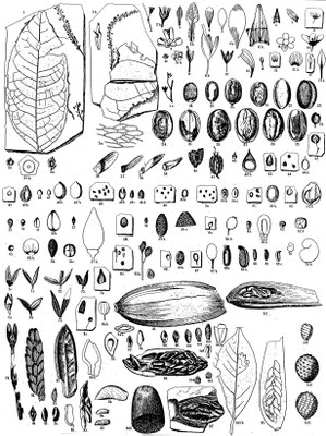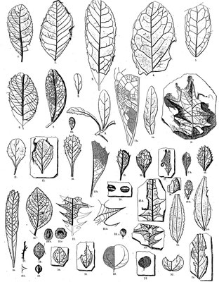 Although for many years no additions have been made to our knowledge of the British Eocene floras, in published works, yet during that period material has been rapidly and steadily accumulating. When, ten years since, my attention was first directed to the fossil leaves which were then found abundantly at Bournemouth, the extent of the Eocene flora hidden there was not even surmised. It had been stated, in fact, to contain but few types. The fossil leaves of Alum Bay, however, were well known, especially to Mr.'Keeping, who had fully ascertained that no very great variety of forms were to be found there. In addition to these, fossil .floras were also referred to as having been collected from Studland and the neighbourhood of Corfe.From the London Basin there were known the Eocene Fruits of Sheppey, and scanty floras from Reading and Dulwich, and from the outlier of the Hampshire Basin at Newhaven. At the present day, however,.owing to further collecting, we have available a whole series of extensive floras, commencing from that of the Woolwich and Reading beds upwards, embracing the Oldhaven beds, the London Clay, the Lower Bagshot, the Middle Bagshot, and the Upper Eocenes; in fact, from almost every stage of the Eocenes known to occur in this country. This magnificent- series of floras of consecutive, and in most cases absolutely defined, age has as yet no parallel in any other country. Its contemplation gives rise to problems, the direction and tendency of which are so unmistakable that, in following the facts as recorded in the succeeding pages, they will be apparent to the student. (...)