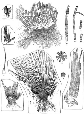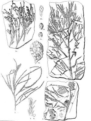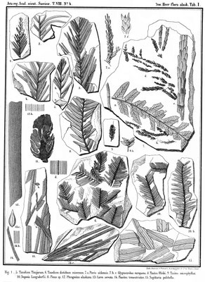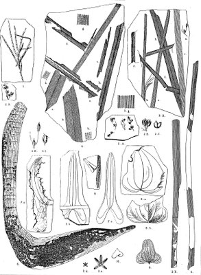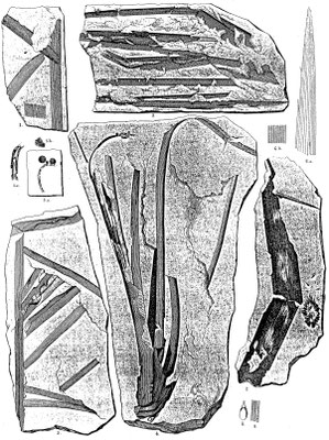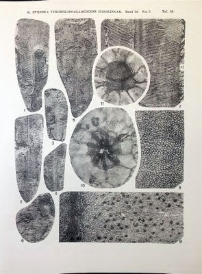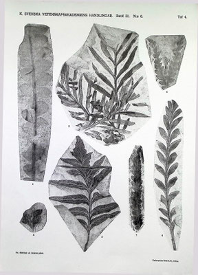 Als Ad. Brongniart 1824 zusammen mit seinem Vater Lund besuchte, wurden sie von Nilsson nach Hör begleitet, und Ad. Brongniart konnte demnach sowohl das Vorkommen der Pflanzenfossilien an der Lokalität selbst wie die Nilsson’schen Sammlungen in Lund studieren. Er legte im Januar des folgenden Jahres1 der Societe philomatique in Paris eine Abhandlung über die bei Hör vorkommenden Pflanzenfossilien vor (5). Über die hier in Betracht kommenden Pflanzenreste wurden folgende Bemerkungen mitgeteilt: (...)