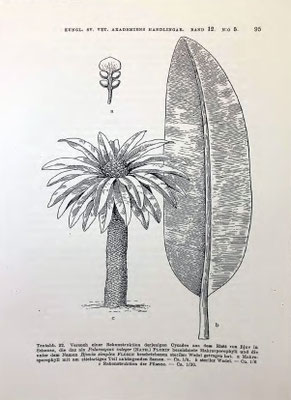 Über das hohe Alter der rezenten Gattung Cycas L. war man auf Grund zahlreicher Funde von Blättern und von vereinzelten Makrosporophyllen überzeugt. Es lagen Blätter mit den äusserlichen Merkmalen von Cycas vor, und zwar in mehreren Formationen bis abwärts zum Rhät. Als Beispiele werden von Solms (p. 88) Cycas Steenstrupi Heer und C. JDicksoni Heer aus der grönländischen Kreideformation, C. Bömeri Schenk aus dem norddeutschen Weald u. a. erwähnt, die von anderen Autoren als Cycadites spp. bezeichnet worden sind. Was die Makrosporophylle betrifft, so war ein solches von Heer als mit C. Steenstrupi auf derselben Platte vorkommend abgebildet worden.